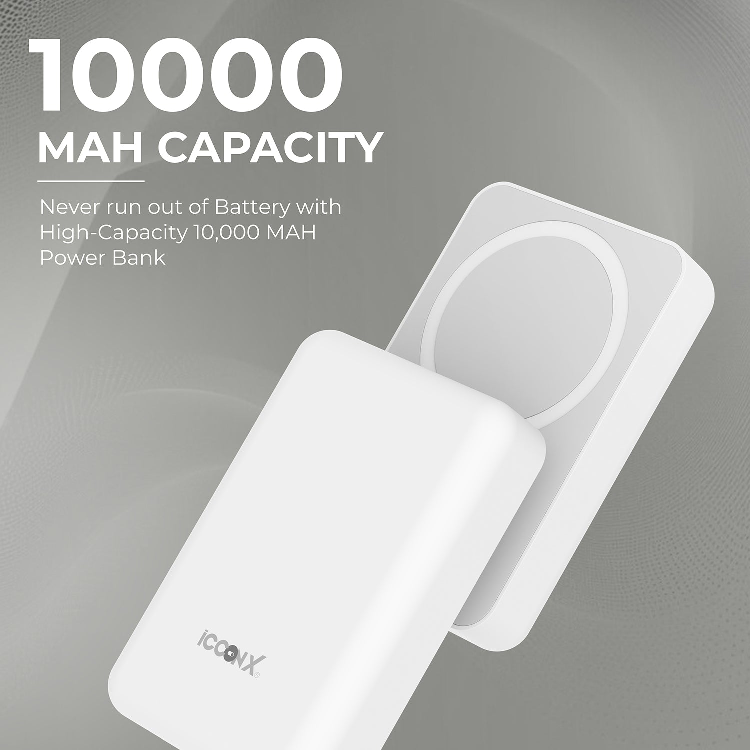 ICCON X PB-160 Magsafe Wireless 10000mAh Fast Charging Power Bank,Strong Magnet,22.5W Output for iPhone & Android & Other Qi Enabled Devices, Designed for ease