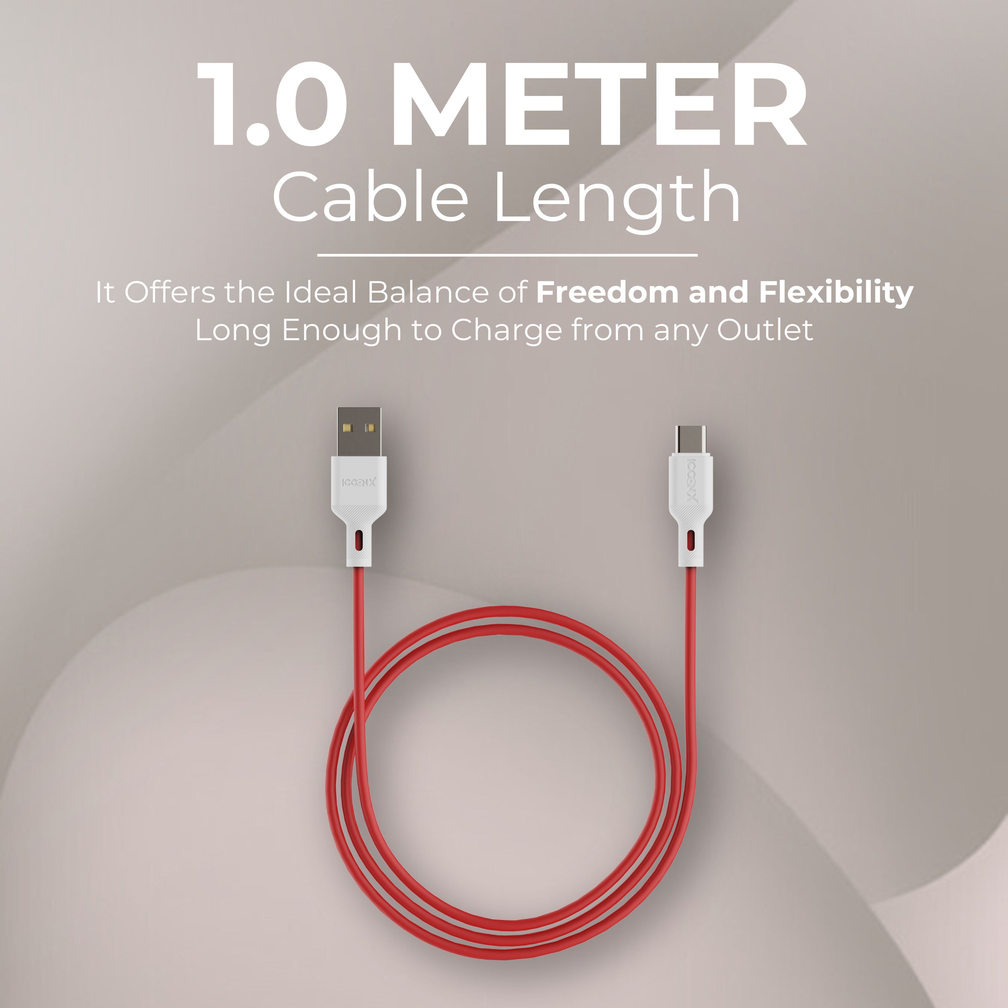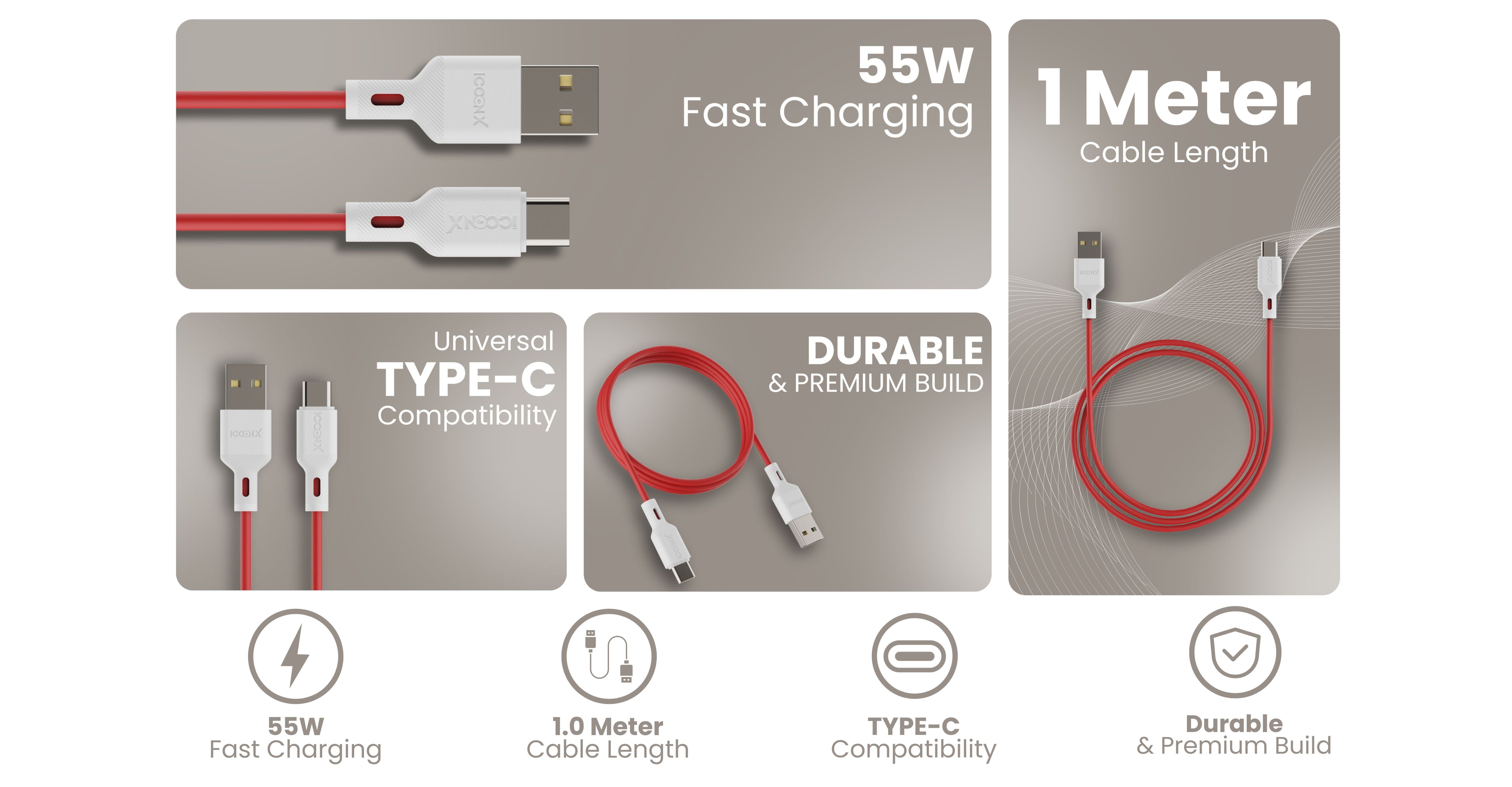 ICCON X LT-55 USB A To Type C Cable, 55W, Sync Cable, 1.0M Cable Length | Samsung | Oneplus | Xiaomi | Realme | Oppo & other android devices| Long Lasting Bending Capacity, Stable Current, 480 MBPS Data Transfer Speed, Data Sync | Designed for Ease.
