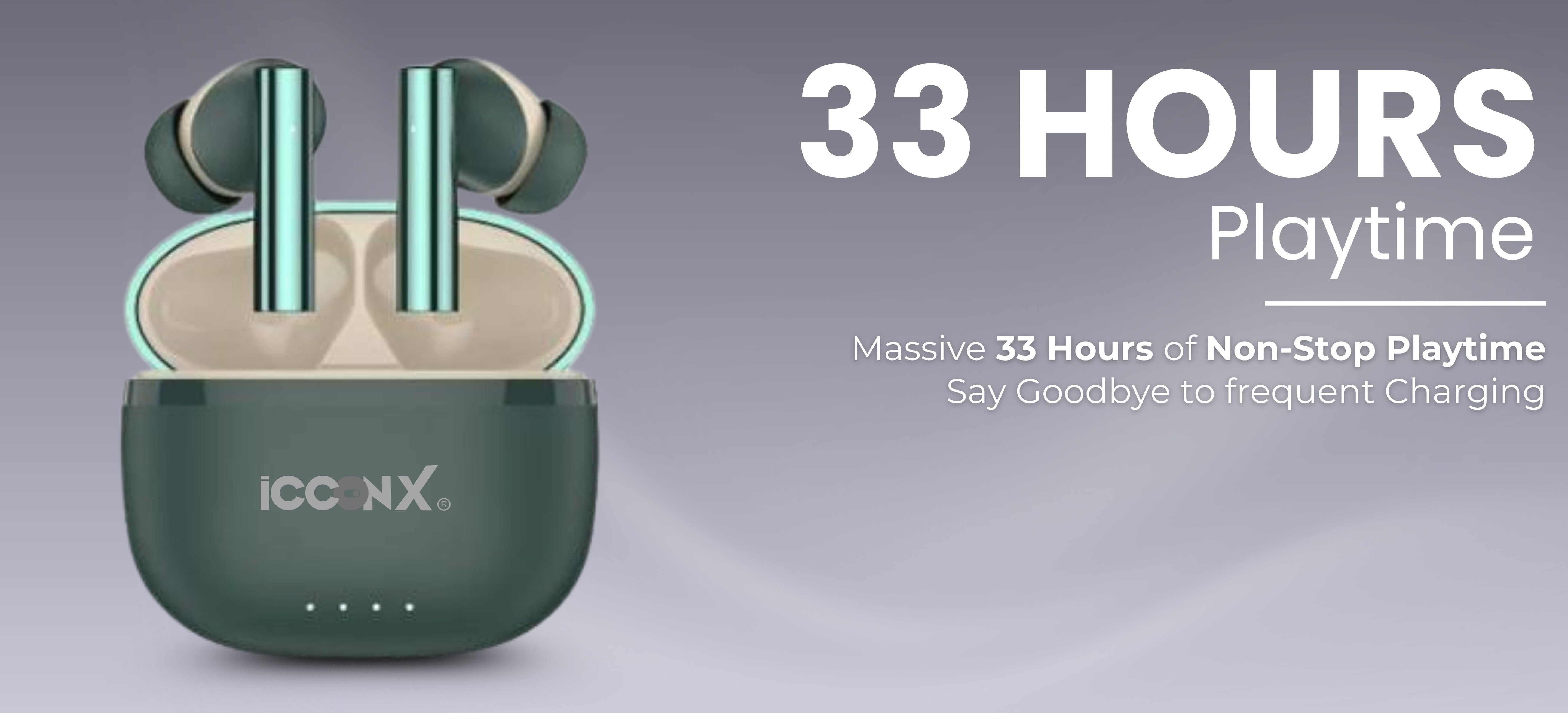 ICCONX CONCERT 95 - Green | 33Hrs Playtime | Bluetooth 5.3 | Fast Charging | SPLASH PROOF |TOUCH CONTROL | GAMING MODE 35ms| Designed for Ease.