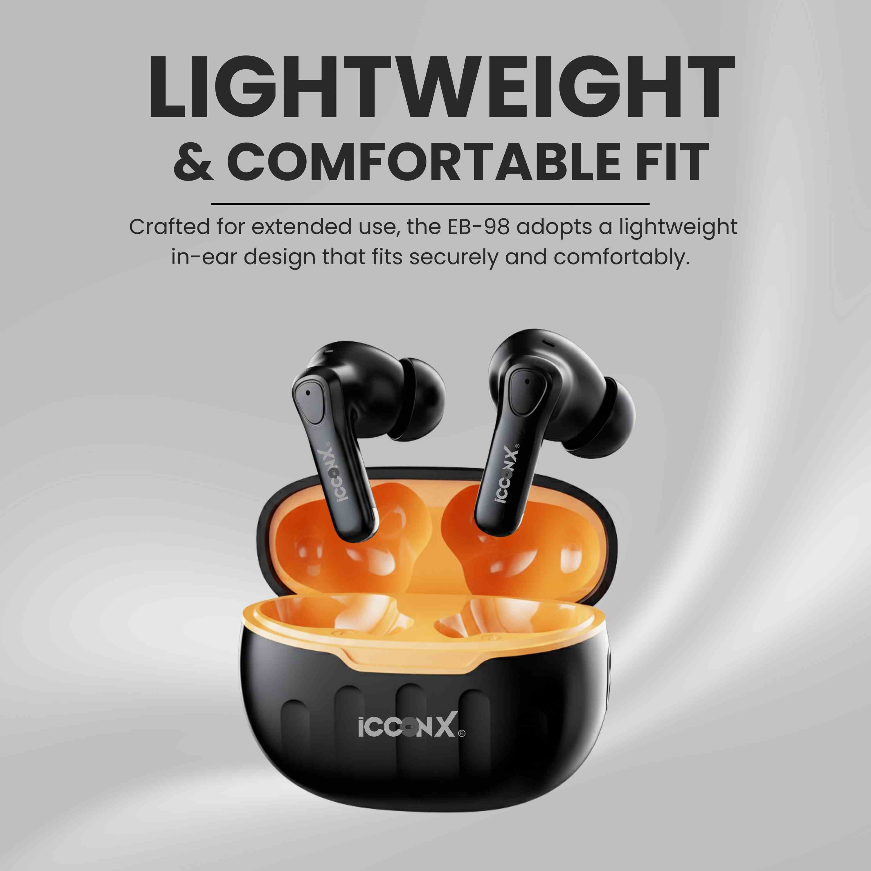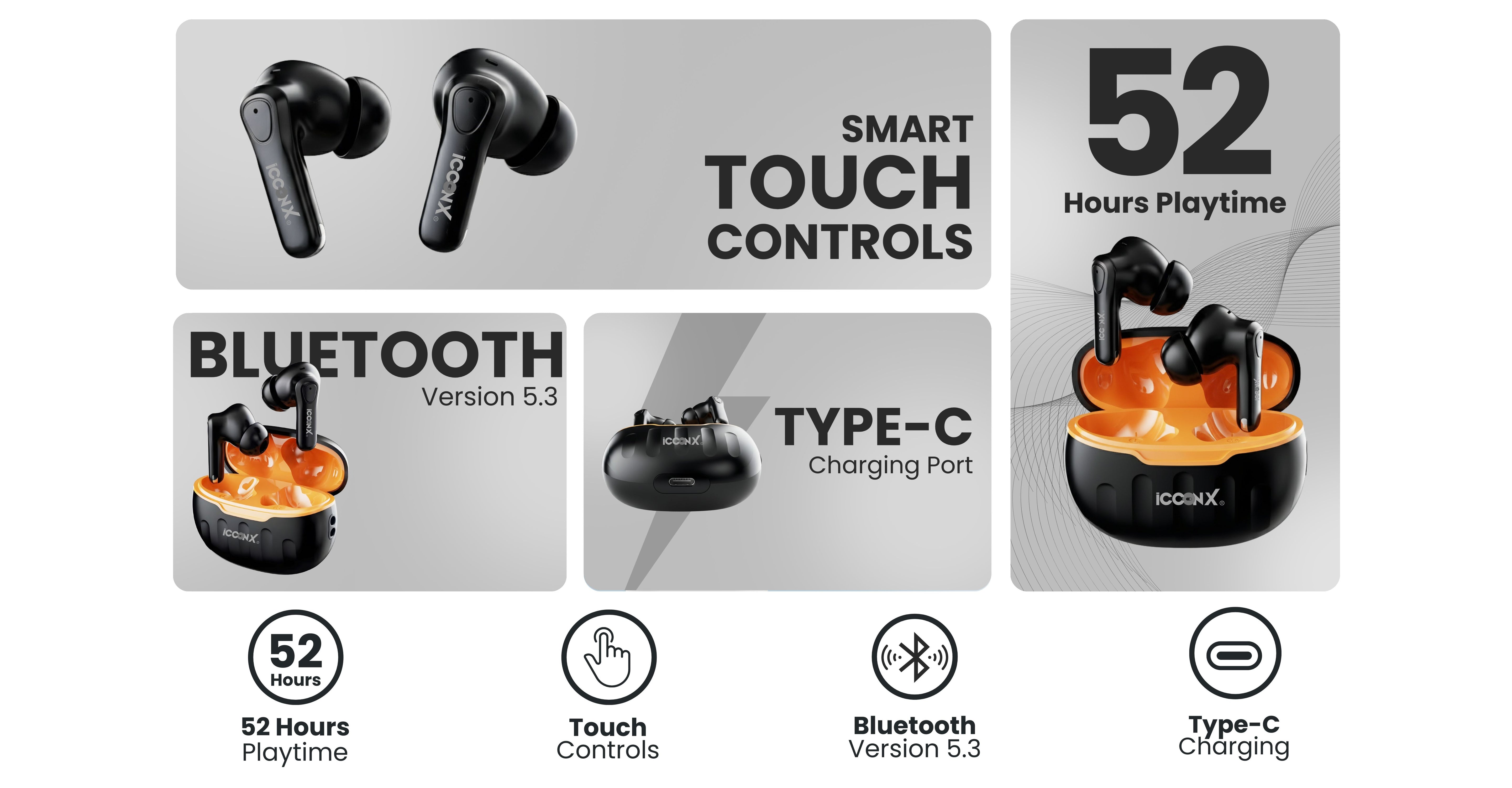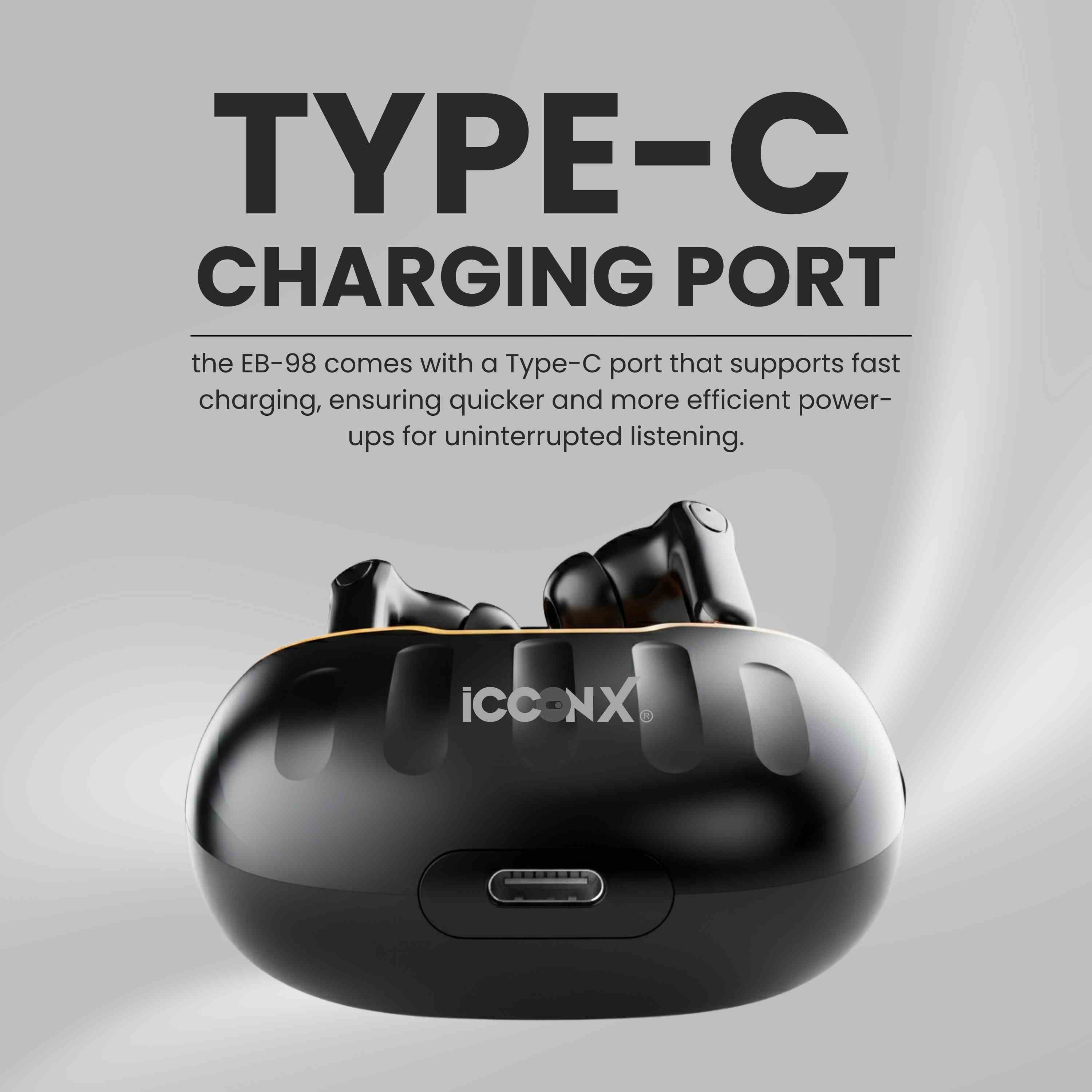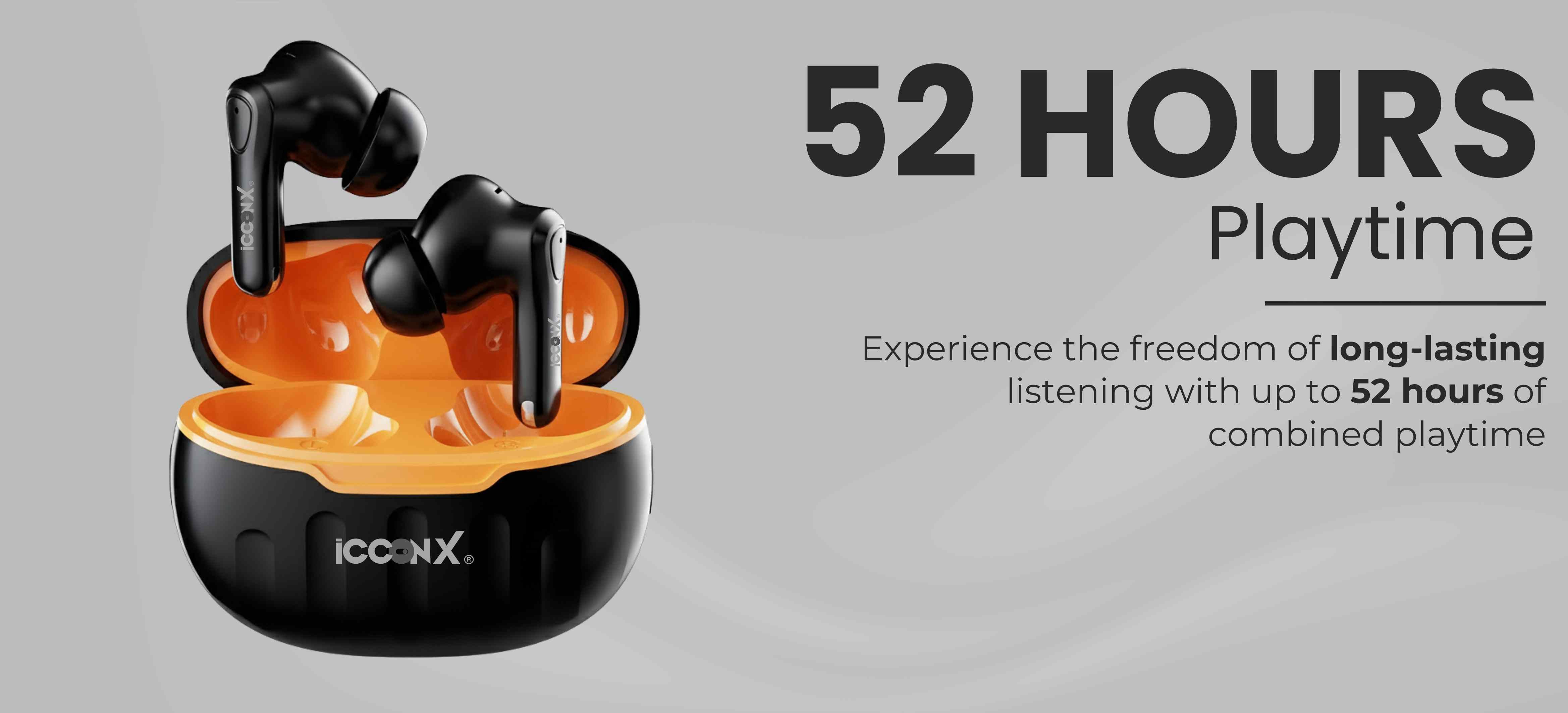 ICCONX EB-98 | 52 Hours Playtime | Bluetooth 5.3 | Deep Bass | Smart Touch Controls | Type-C Fast Charging