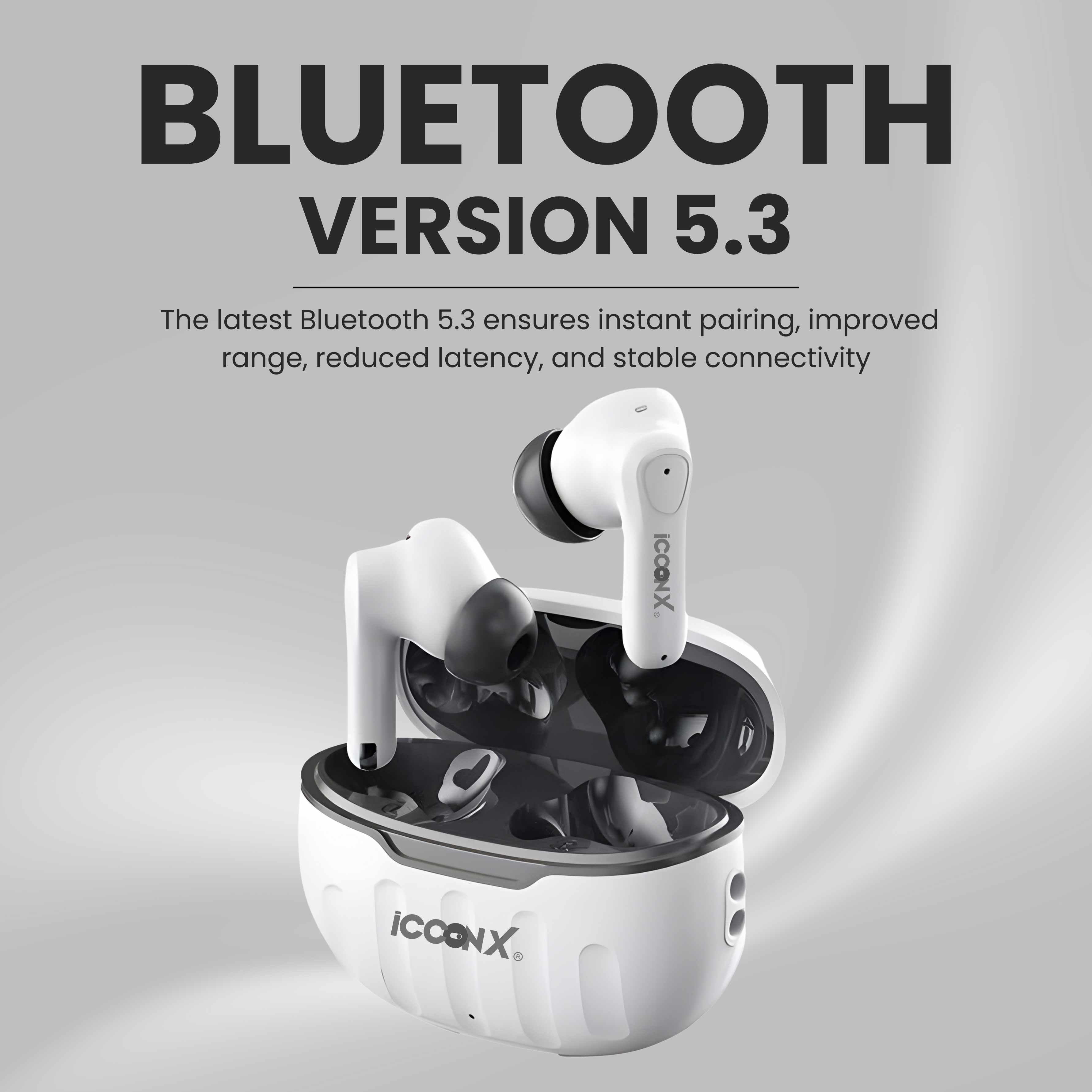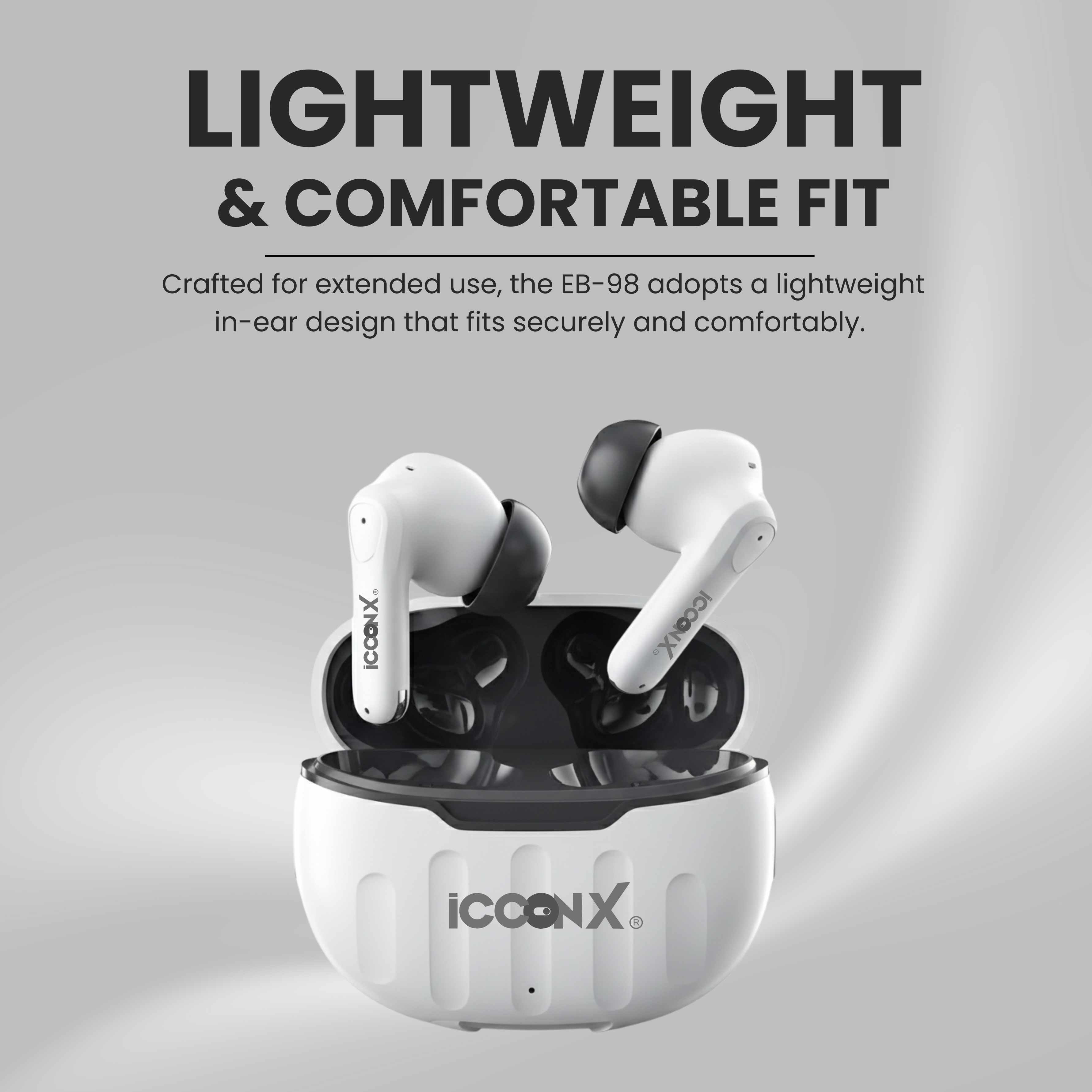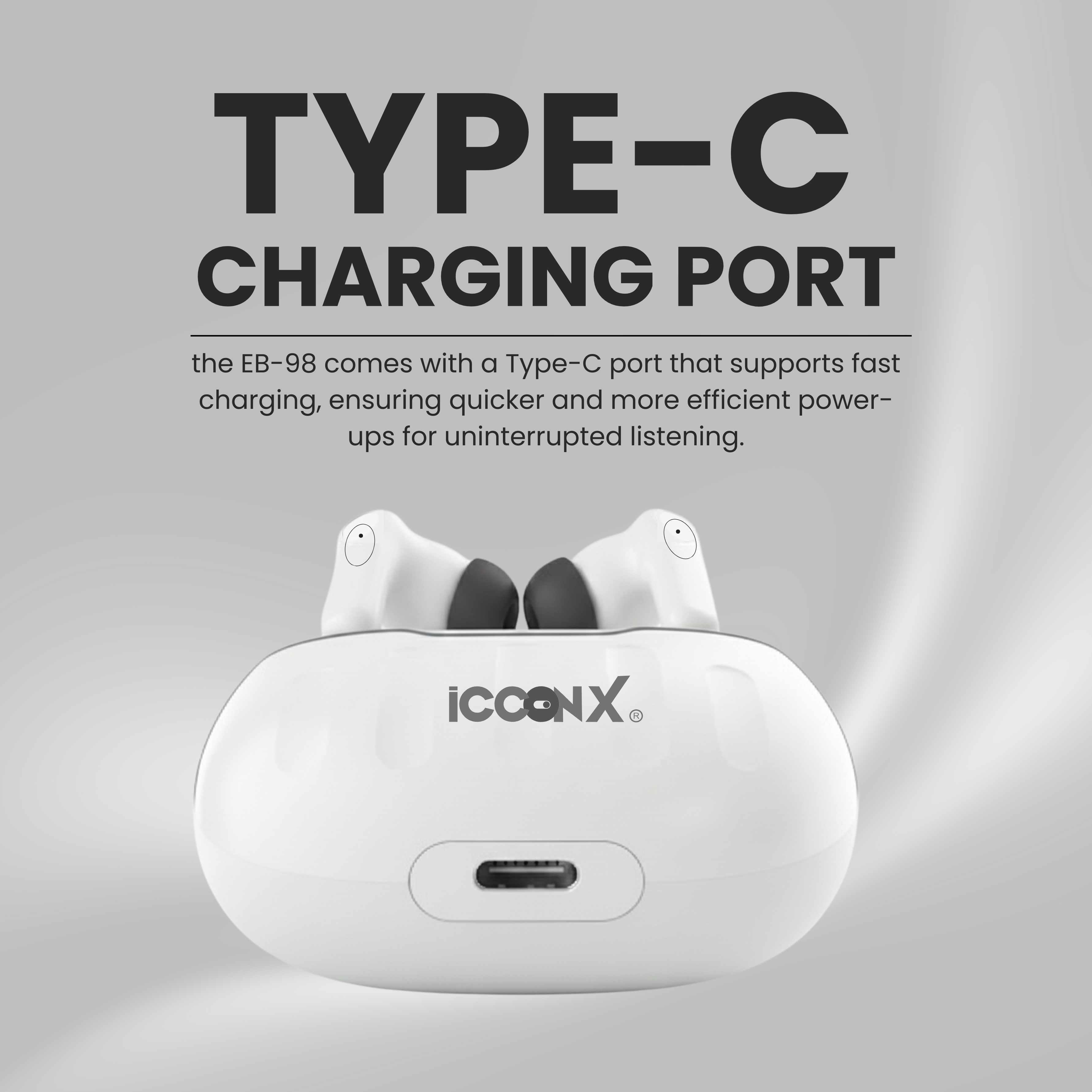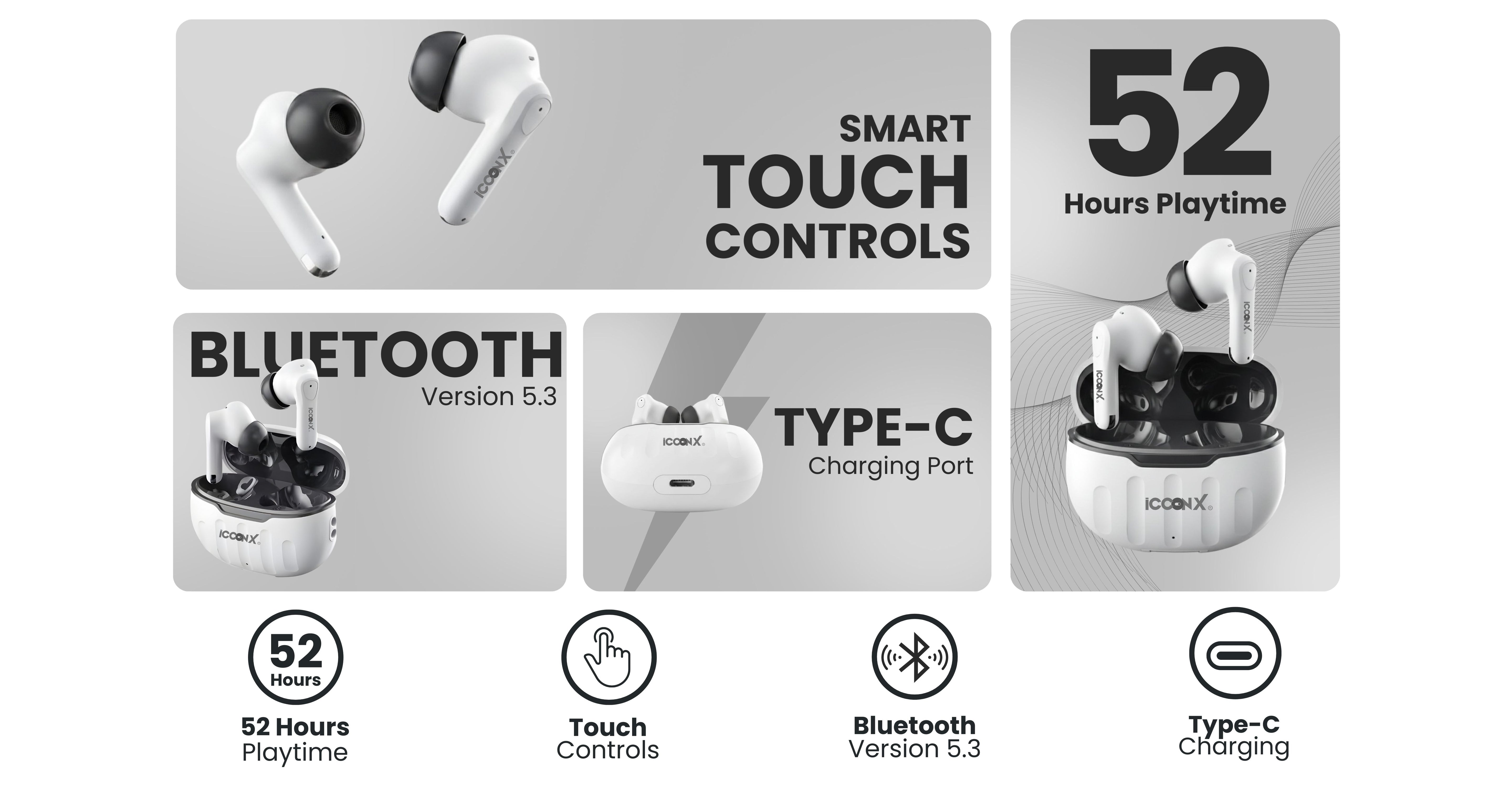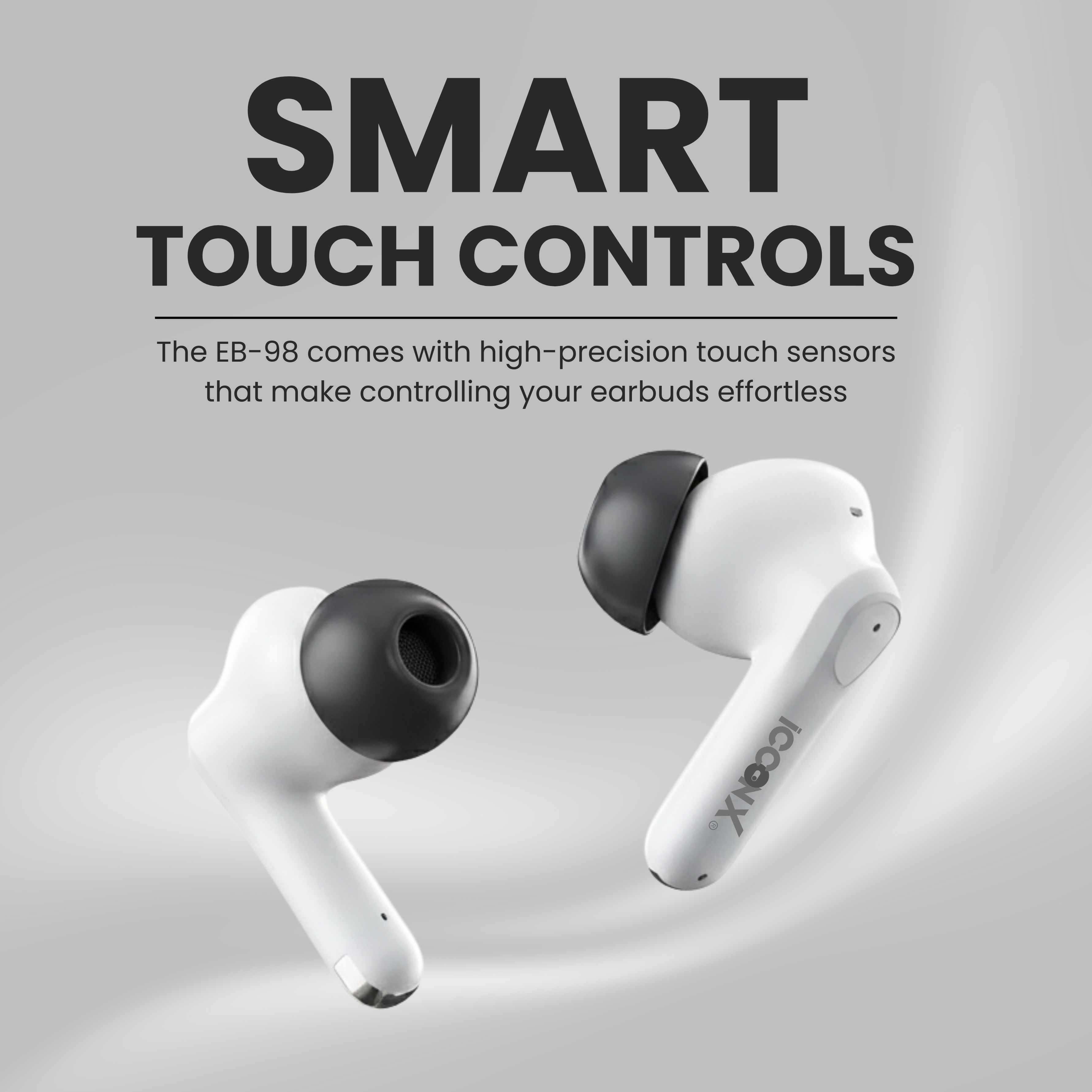 ICCONX EB-98 - White | 52 Hours Playtime | Bluetooth 5.3 | Deep Bass | Smart Touch Controls | Type-C Fast Charging