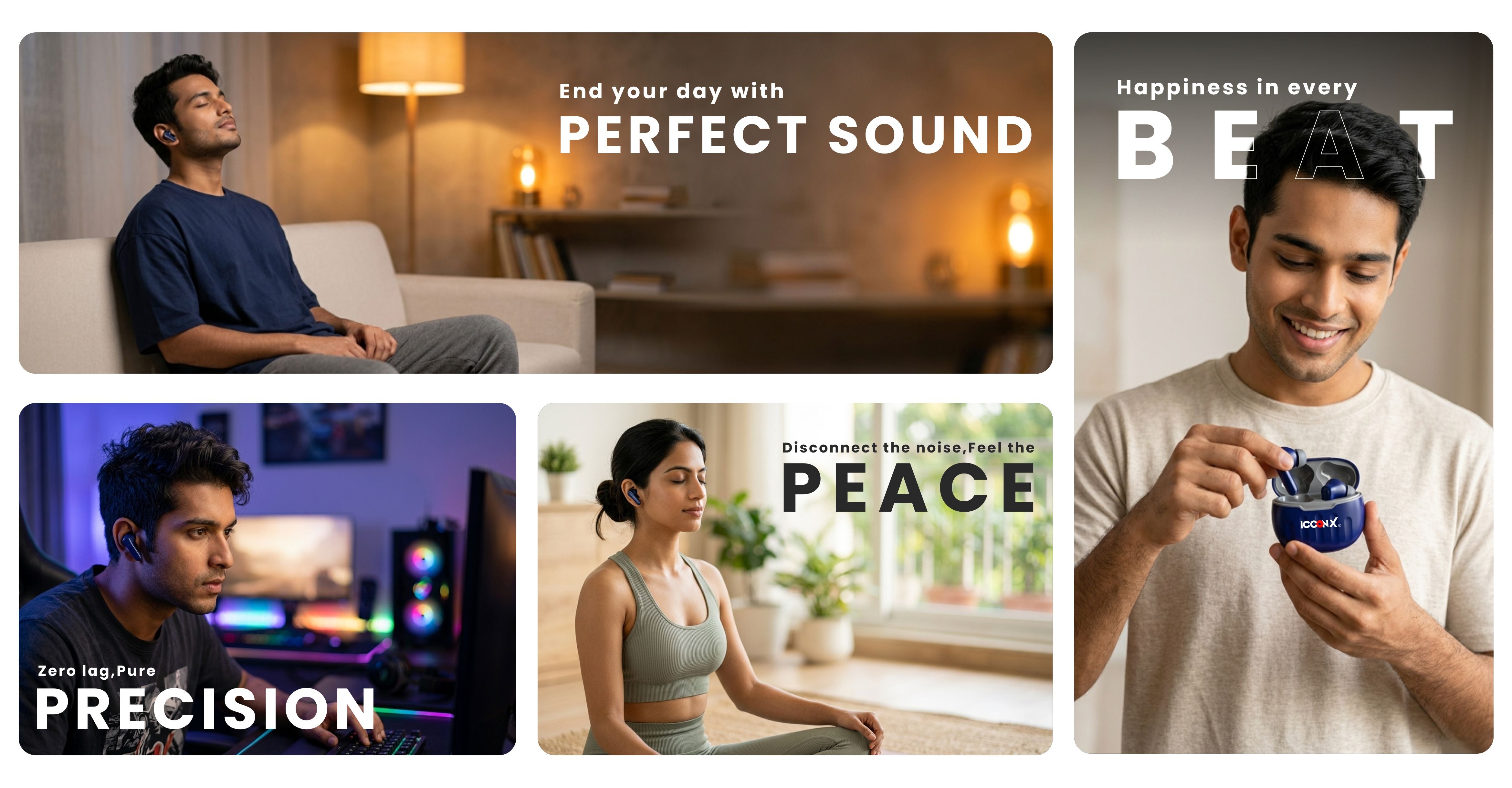ICCONX EB-98 - Navy | 52 Hours Playtime | Bluetooth 5.3 | Deep Bass | Smart Touch Controls | Type-C Fast Charging