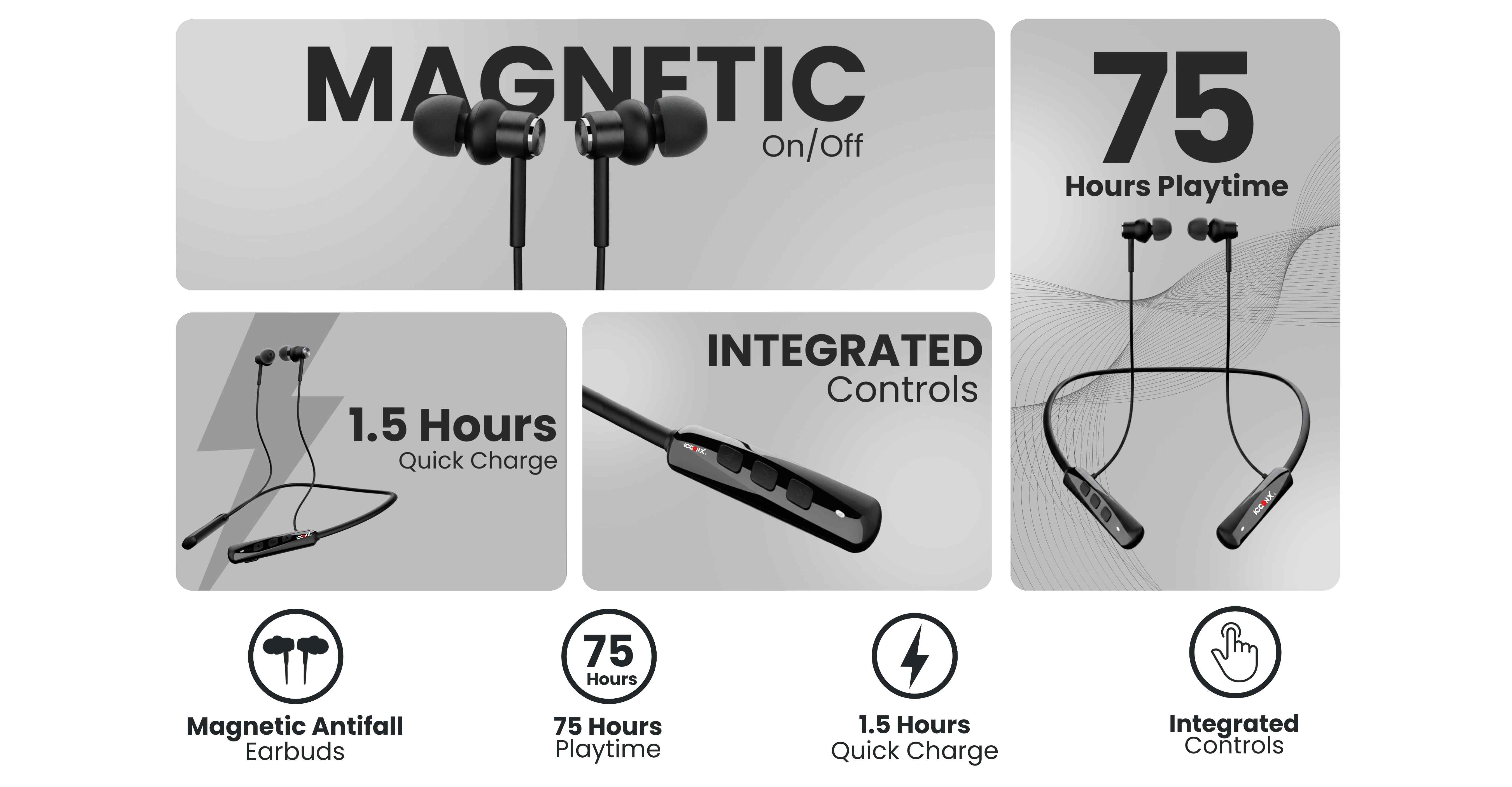 Smart magnetic earbuds allow automatic ON/OFF when attached/detached, saving battery and offering a smart user experience. Anti-fall design keeps the earbuds secure and tangle-free during movement.