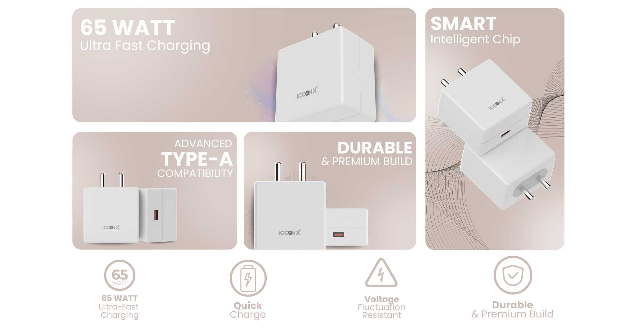 ICCONX MC-72 PRO PLUS 65W USB TYPE A ADAPTER WITH CABLE COMPATIBLE WITH ONEPLUS